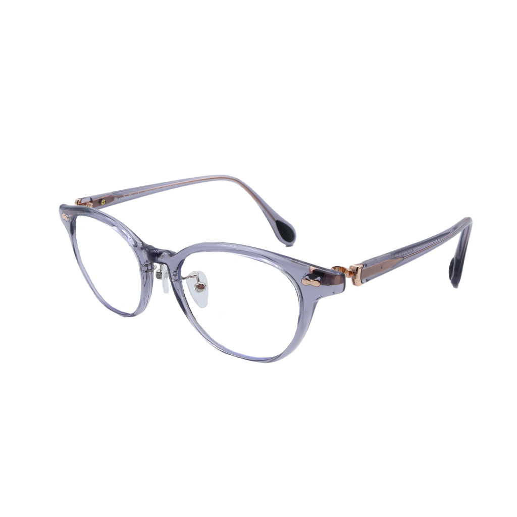 セルフレームの美しさを活かしながら、正面と横にメタルパーツをあしらうことで、現代的で洗練された印象に。