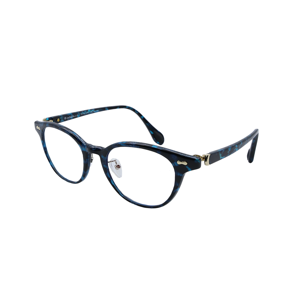 イタリアで人気のダルメシアン柄を、顔なじみの良いカラーリングで仕上げた遊び心あるデザインです。正面のクリアブラックに、サイドへバランスよく取り入れた柄が、若々しくユニークな印象を演出。智にあしらったシルバーメタルが、顔周りを明るく引き立て、全体のトーンを美しく整えます。